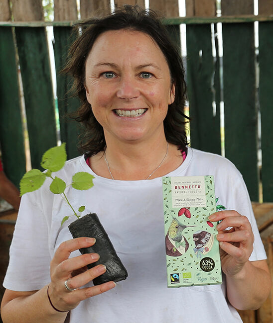 Daraus entstand der neugierige Wunsch, aus erster Hand zu sehen, wie die Kakaobohnen angebaut wurden; Lucy reiste in die Dominikanische Republik. Dies war der Moment, in dem ihr klar wurde, wie wichtig die ethische Beschaffung von Bio- und Fairtrade-Kakao für ihre Werte bei der Herstellung von Schokolade ist und wie diese Praktiken das Leben sowie die Qualität und den Geschmack von Kakao verbessern. Sie stellte für sich weiterhin 2-kg-Chargen her, die reich an Kakao waren, natürlich und biologisch angebaut wurden und von Fairtrade-Kooperativen stammten, die Lucy besucht hatte. Und benutzte ihre Schüler weiterhin als freie Verkoster.